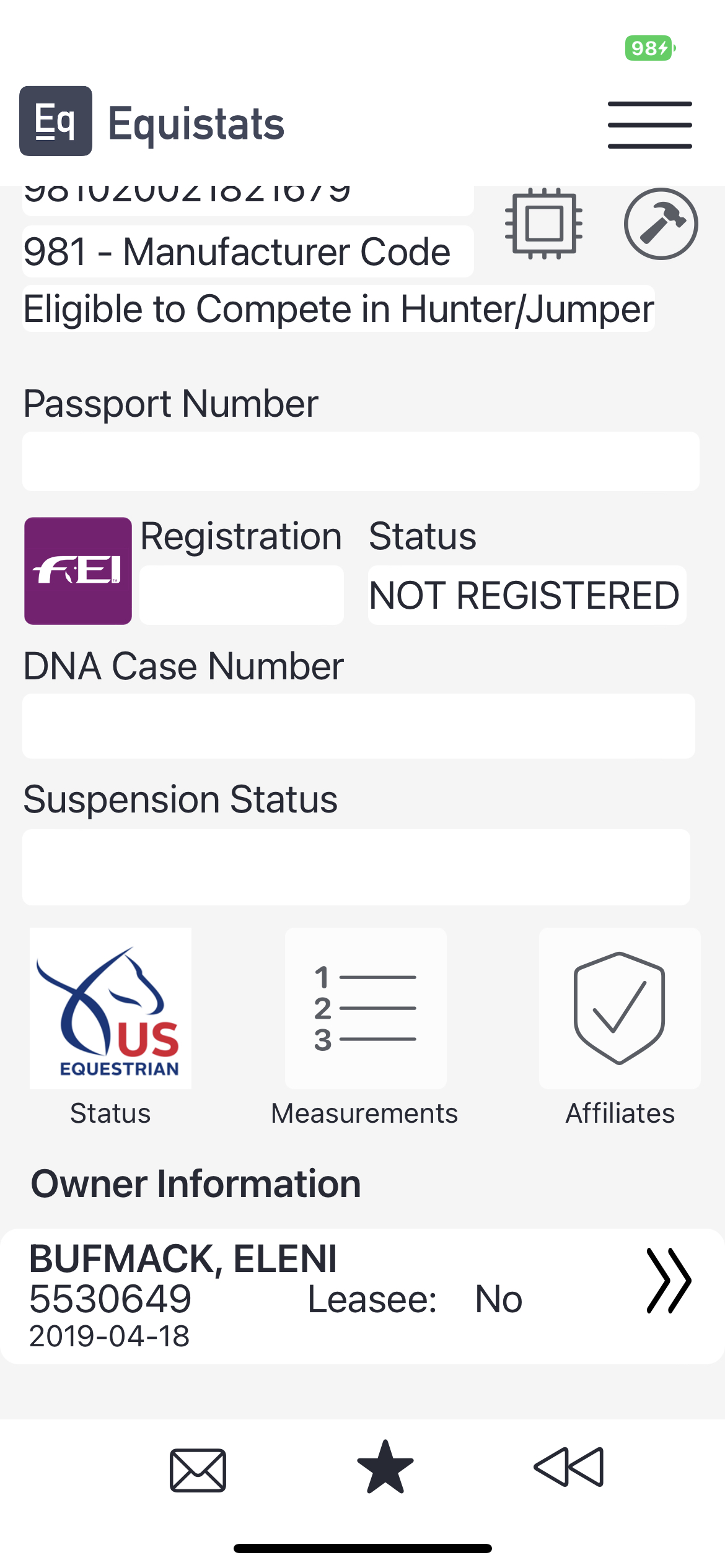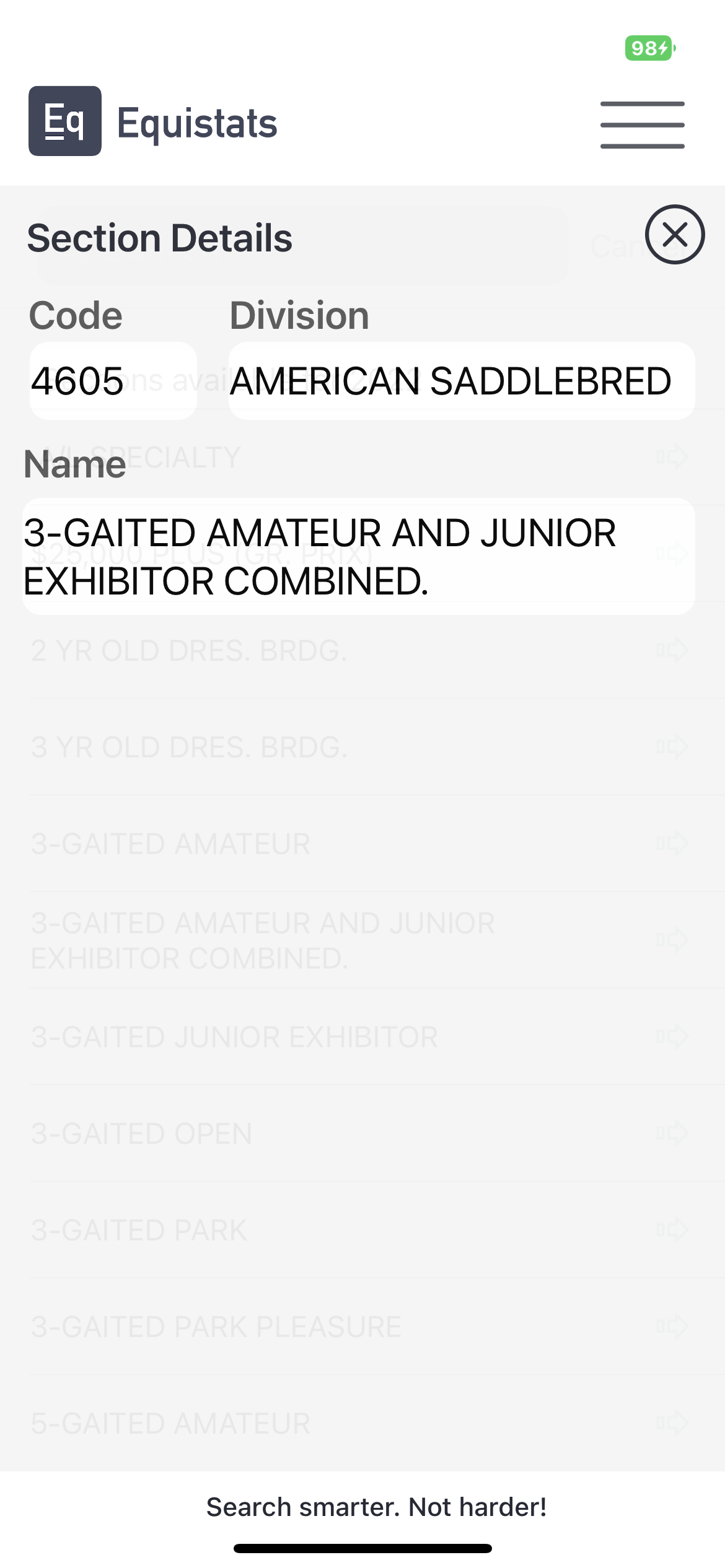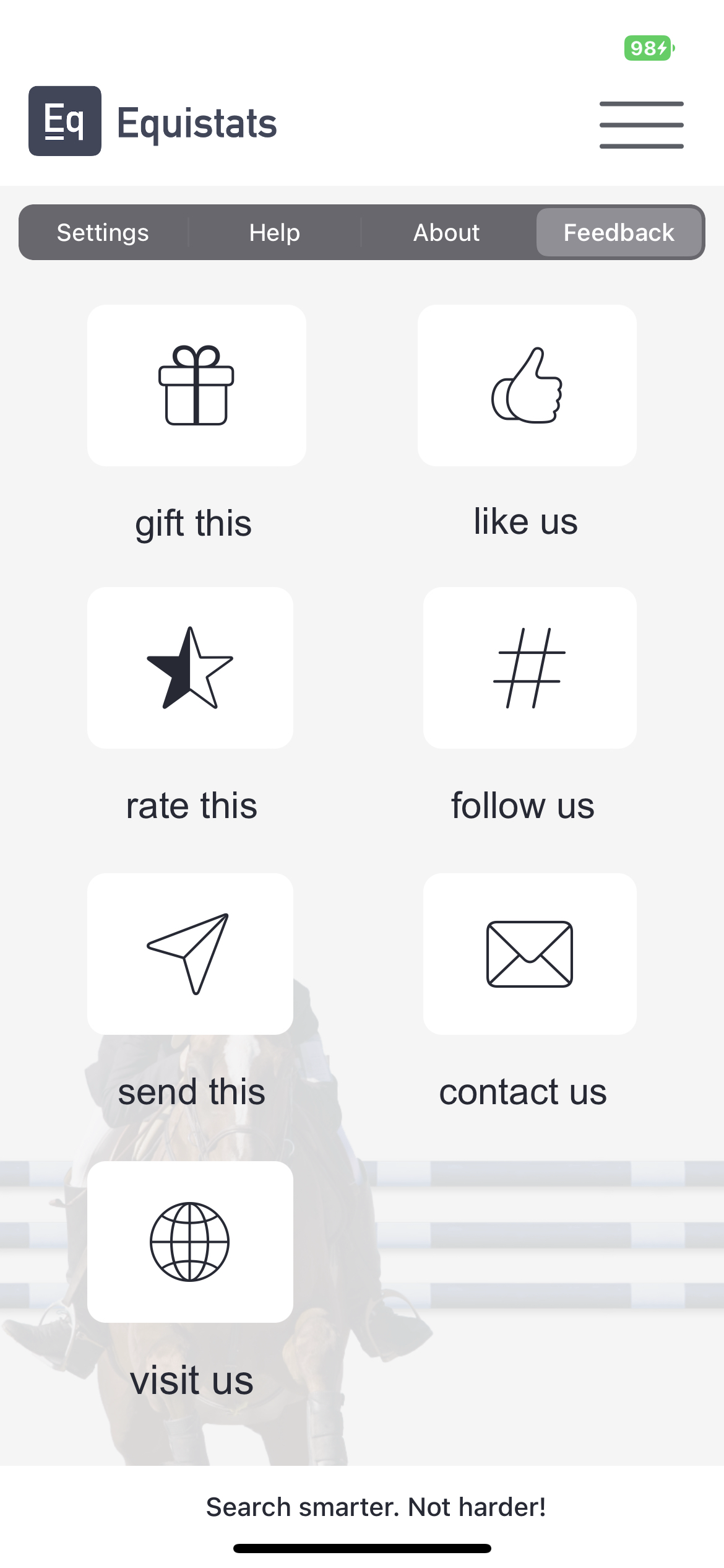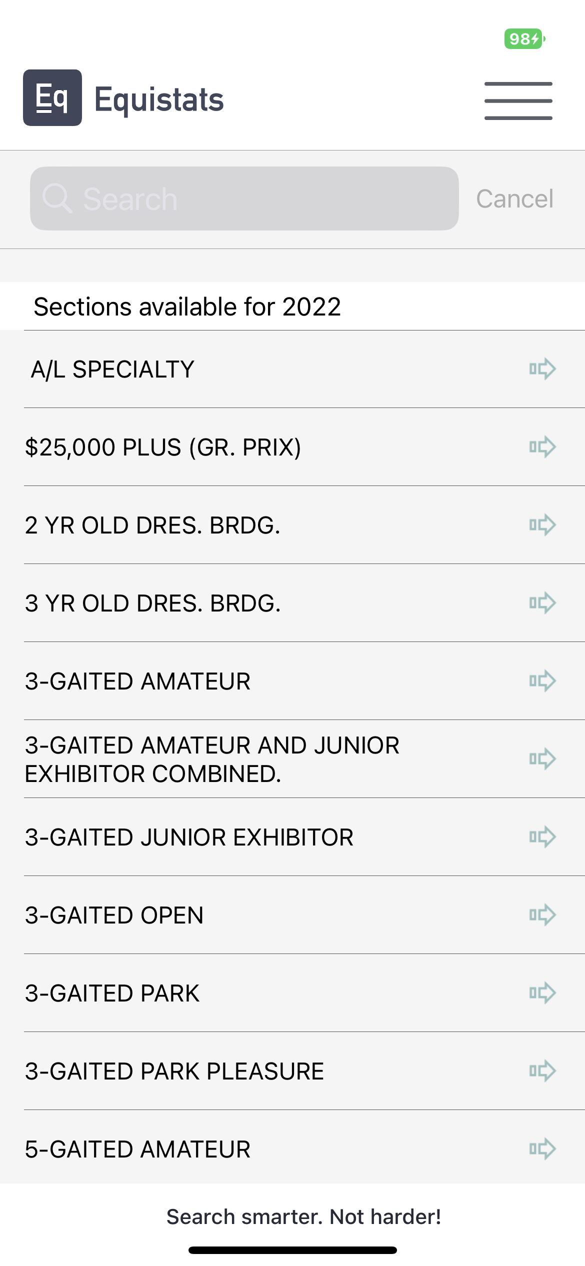 Easily keep track of your favorite horses, riders or organizations. You can add a photo and personally rate them. Create your own metrics. You be the judge.