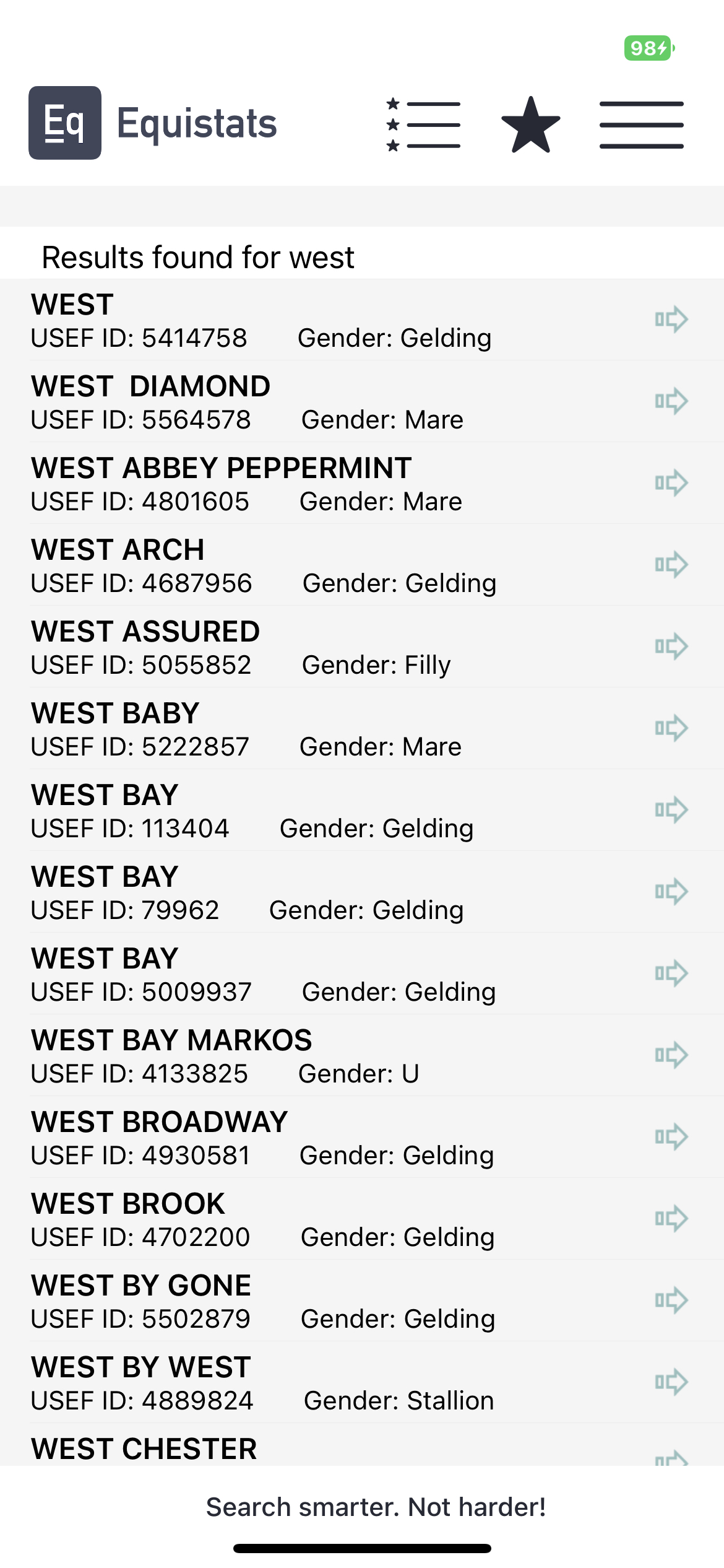 Search up to 100 matching horse records for the Name provided. Search by USEFID for immediate results.
